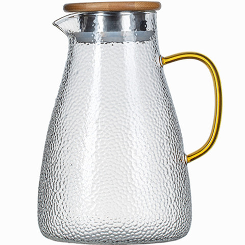 New Style Glass Cold Water Jug with Wood Lid Glass Carafe for Juice Lemon Water Iced Tea Glass Jug